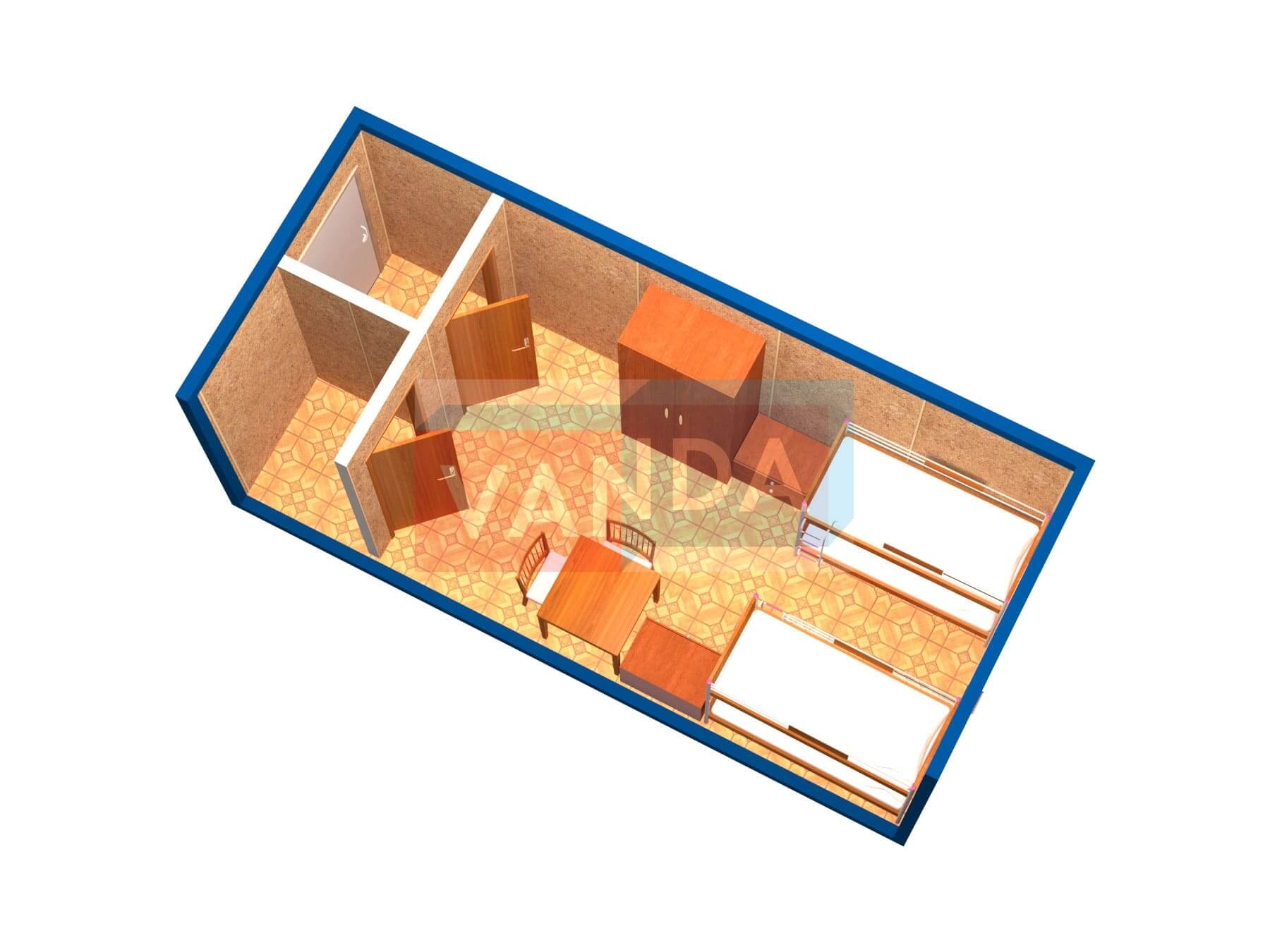Строительная бытовка со сборкой на месте №6 (вариант 1) 5.8x2.2 12.76 Оргалит-ДВП Имитация бруса 130 500 р. Уточняйте у менеджера
